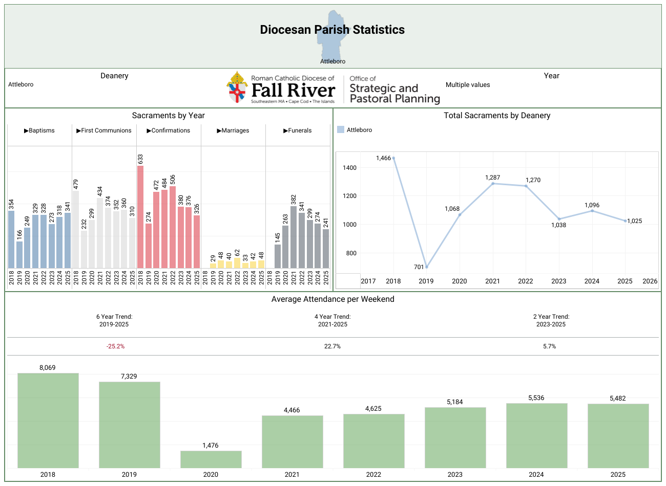 Diocesan Parish Statistics and Mass Attendance Trends 2018- 2025