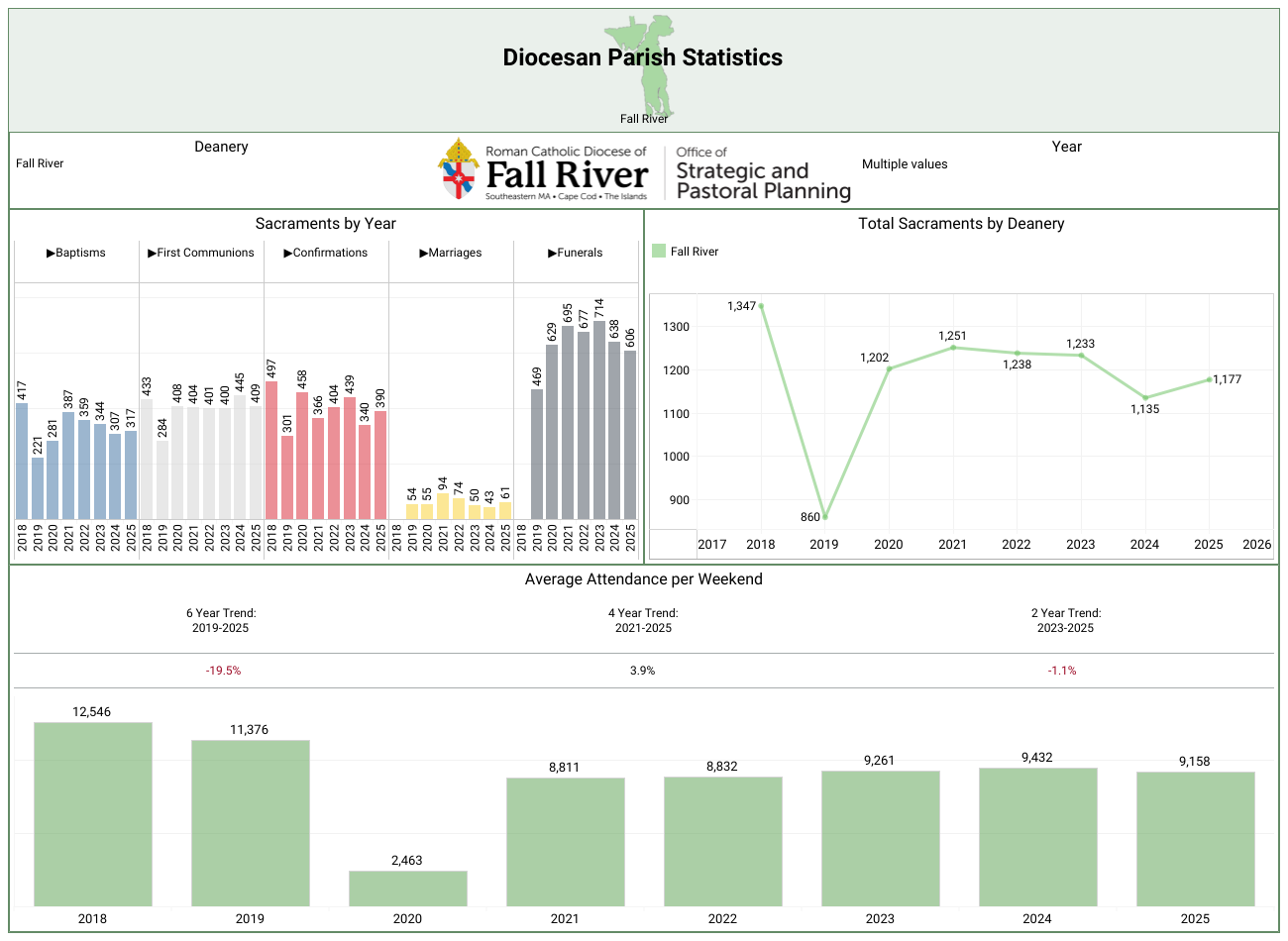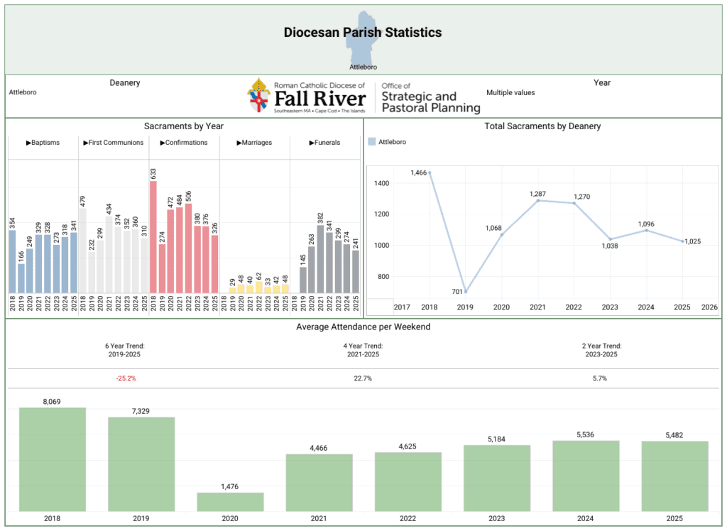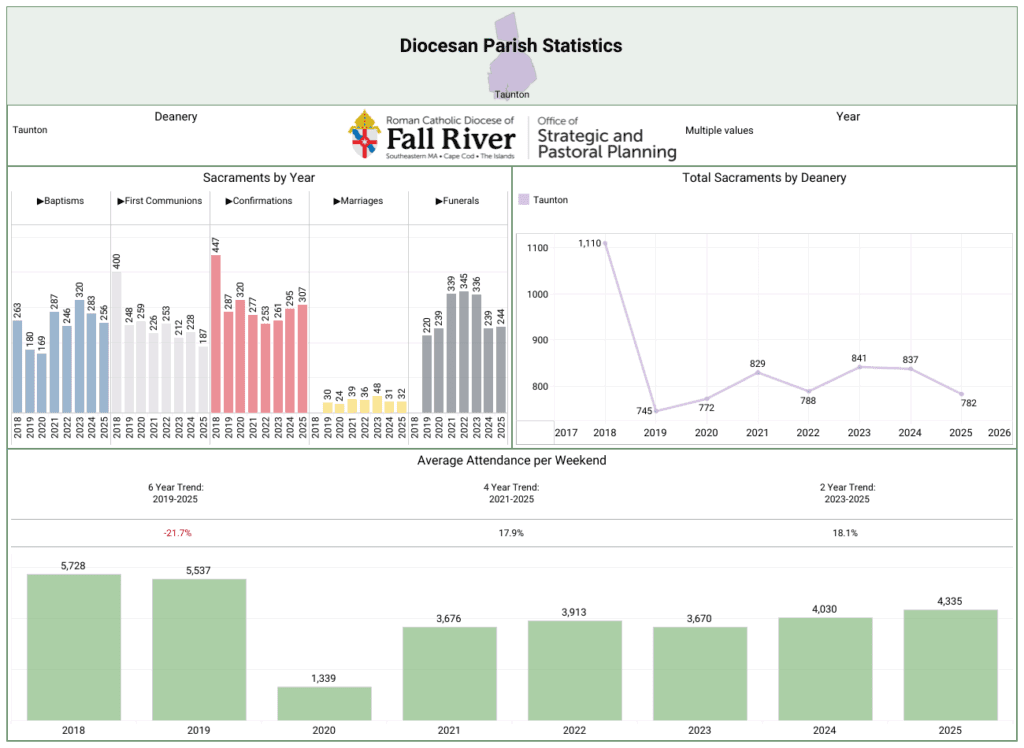Fall River Deanery – Statistics and Mass Attendance from 2018 – 2025