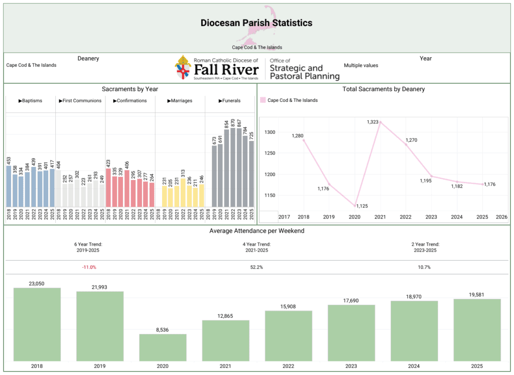 Cape Cod & The Islands – Statistics and Mass Attendance from 2018 – 2025