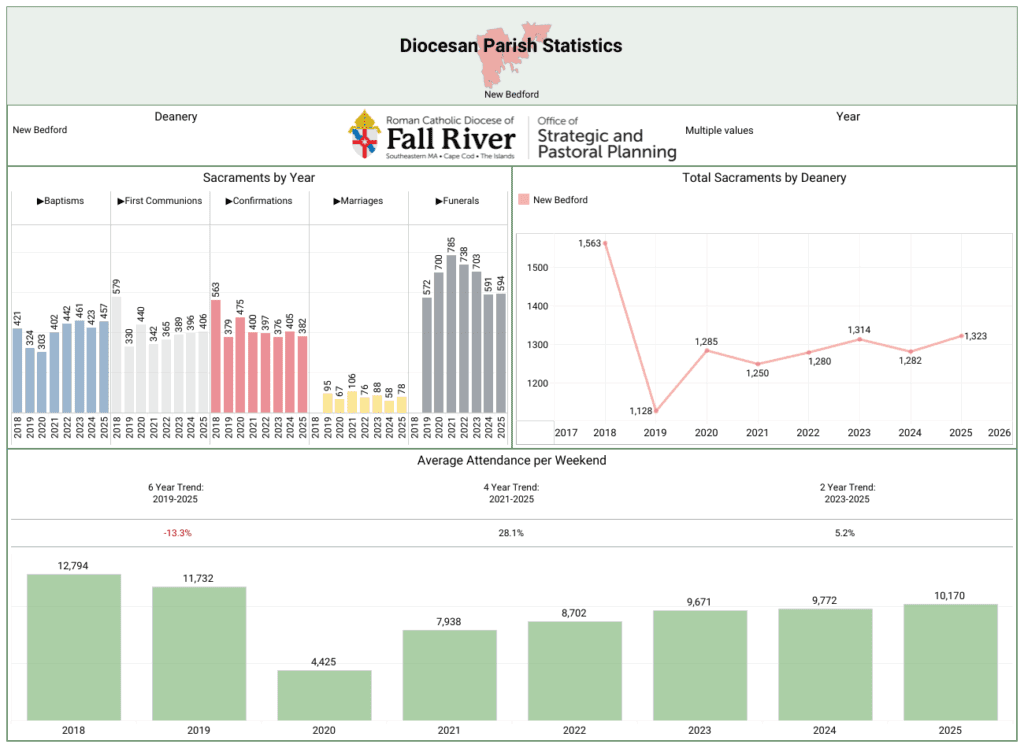New Bedford Deanery – Statistics and Mass Attendance from 2018 – 2025